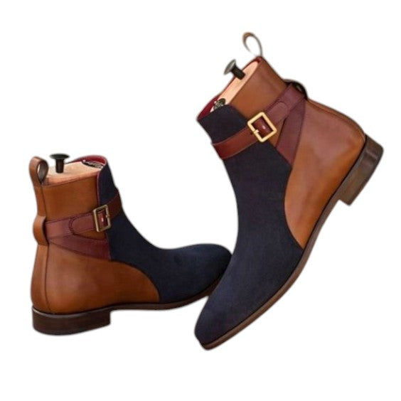 Men's Brown & Blue Suede Leather Jodhpur Boots