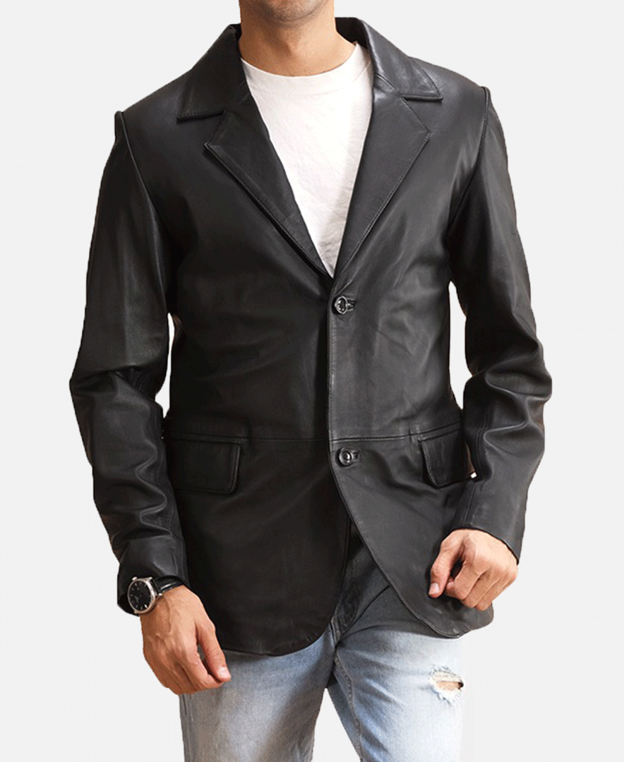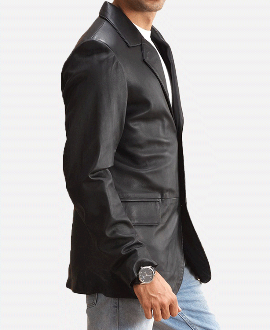 Outer Shell: Real LeatherLeather Type: SheepskinLeather Finish: Semi-anilineInner Shell: Quilted viscose liningClosure Style: ButtonCollar Style: NotchCuffs Style: Open HemInside Pockets: TwoOutside Pockets: TwoColor: Black