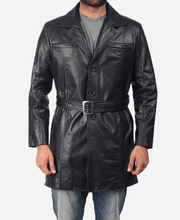 Outer Shell: Real Leather Leather Type: Cowhide Inner Shell: Quilted Viscose Lining Closure Style: Button + Waist Belt Collar Style: Notch Cuffs Style: Open Hem Outside Pockets: Two Waist Pockets, Two Chest Pockets Inside Pockets: Two Color: Black